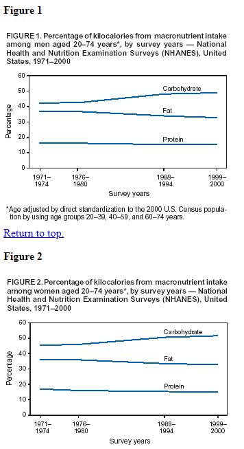 Now, let's look at a graph of what people have been eating over that period of time. Which lines show a big change that just so coincidentally starts right when the obesity epidemic starts?