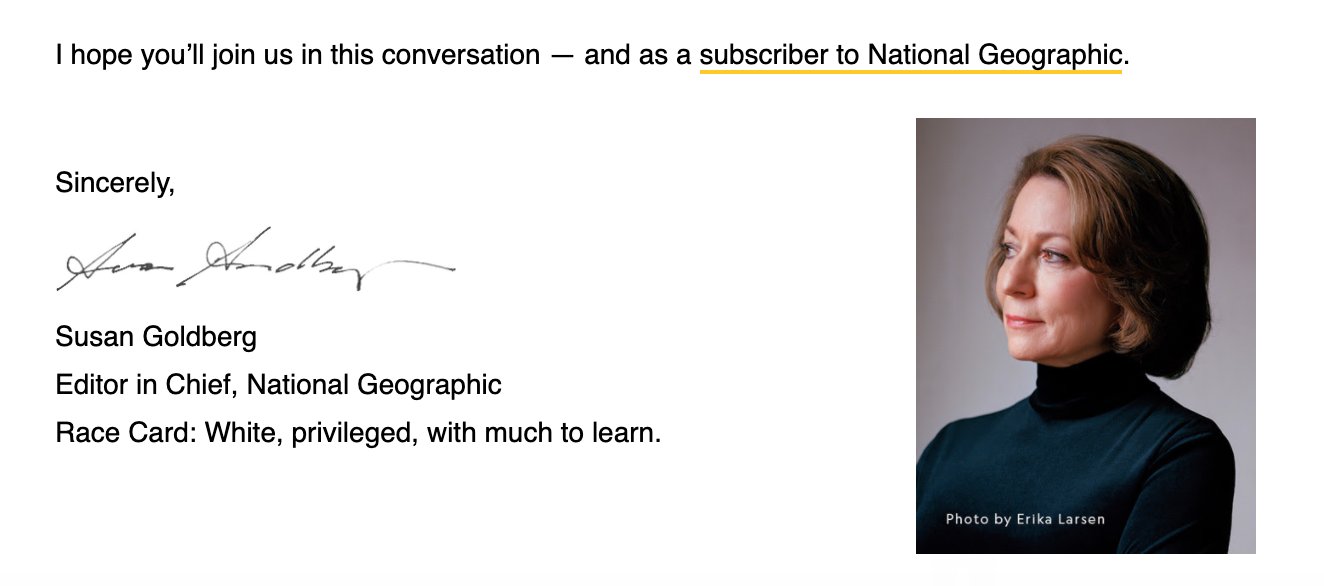 National Geographic editor in chief Susan Goldberg published a dramatic front-page article in 2018 stating that the concept of race is "a made-up label" with "no scientific basis."