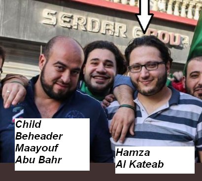 **Photo 4** – Maayouf Abu Bahr and his buddies make a selfie with 12-year-old Abdallah Issah before they behead him.
